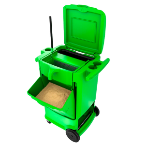 modo da soddisfare le problematiche di disinquinamento. Le nuove normative nazionali e comunitarie, riguardanti la sicurezza e la prevenzione sul lavoro,prevedono che vengano dislocati kit di pronto intervento per arginare ed assorbire eventuali fuoriuscite di liquidi pericolosi. Materiale: metallo verniciato.